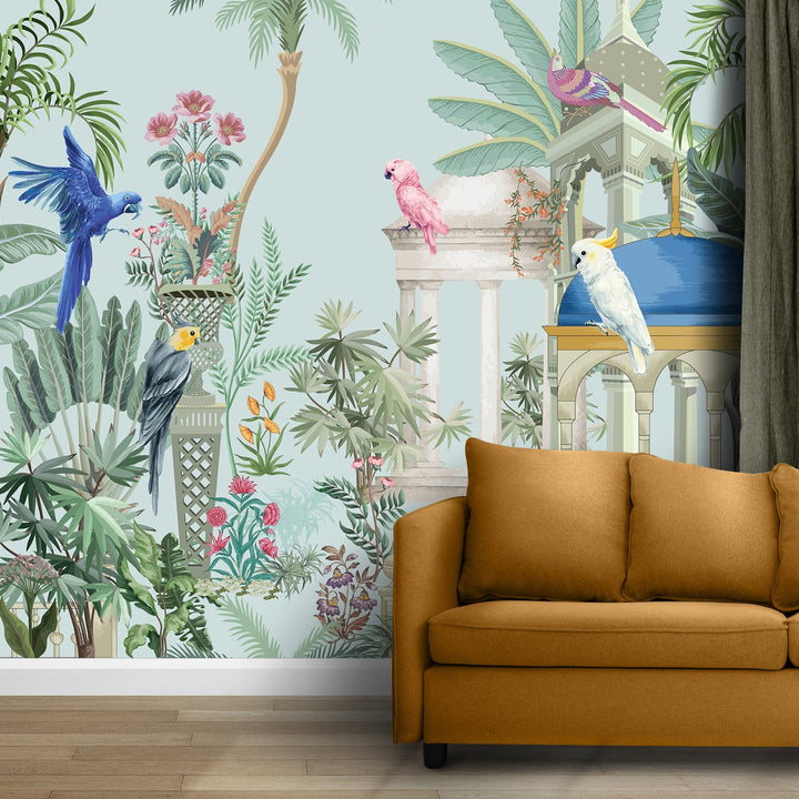 Ethnic India Themed Birds in a Mughal Garden Premium Wallpaper Murals For Home, Hotel and Café Decoration