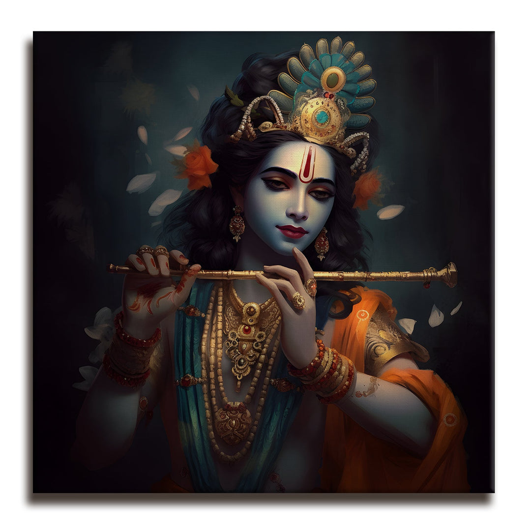 Elevate your living space with the timeless allure of our grand Radha Krishna canvas painting. This opulent masterpiece is a testament to the enduring love between Lord Krishna and his eternal consort, Radha, captured in exquisite detail on a large canvas.