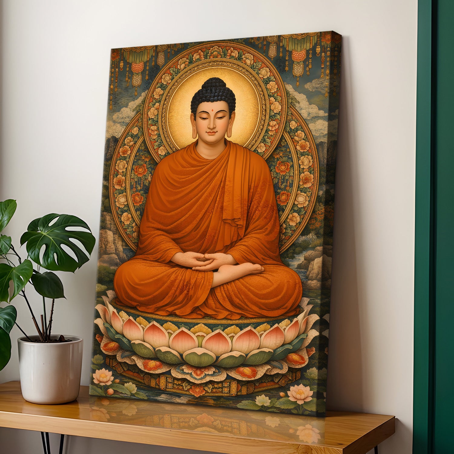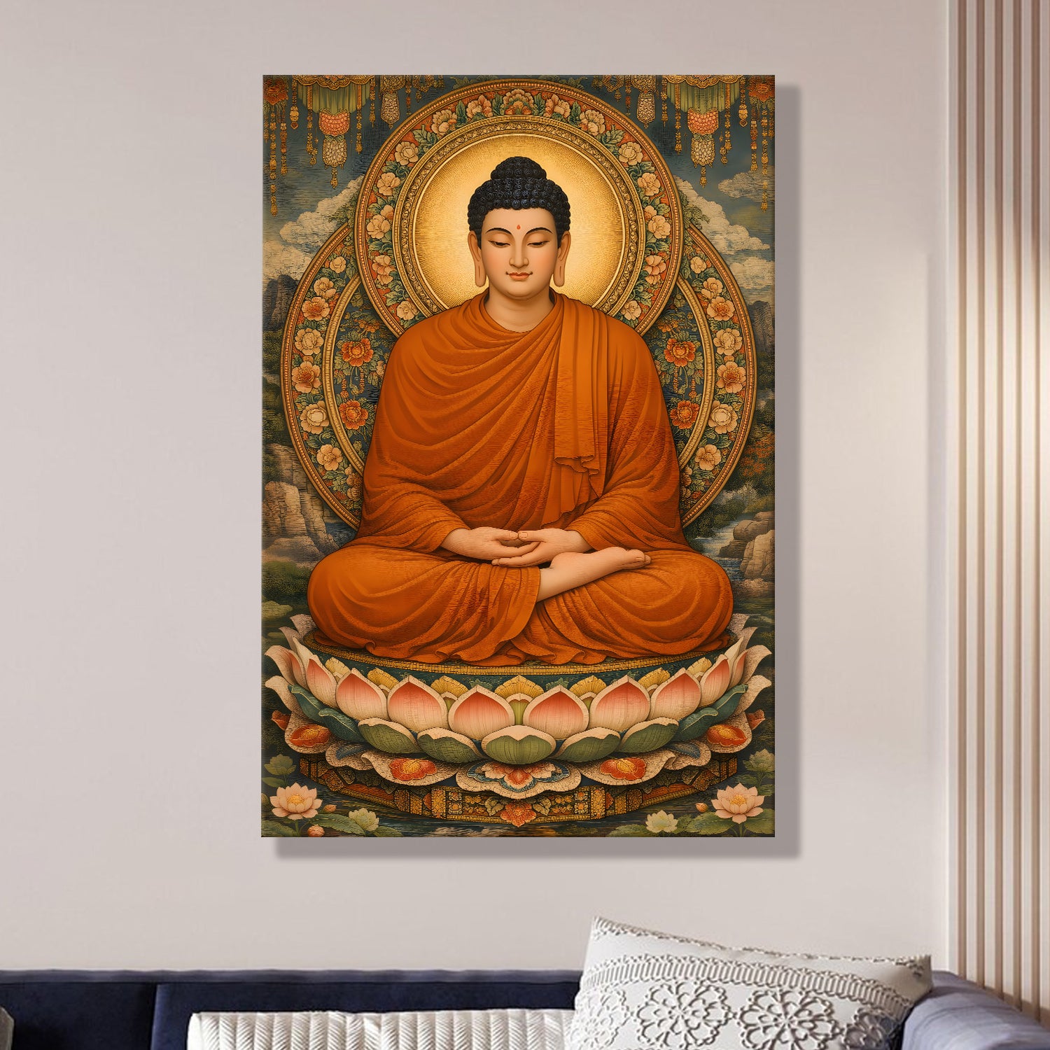 Serene Buddha Meditation Wall Art | HD Canvas Print Gallery Wrap Painting | Ready to Hang | Perfect for Pooja Room & Office Décor | Size: 20x30 Inch (BDWA56)