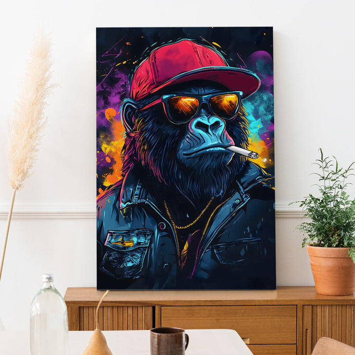 Ape Hustler Wall Art Painting, HD Canvas Print, Framed, Ready to Hang. (POMWA86)
