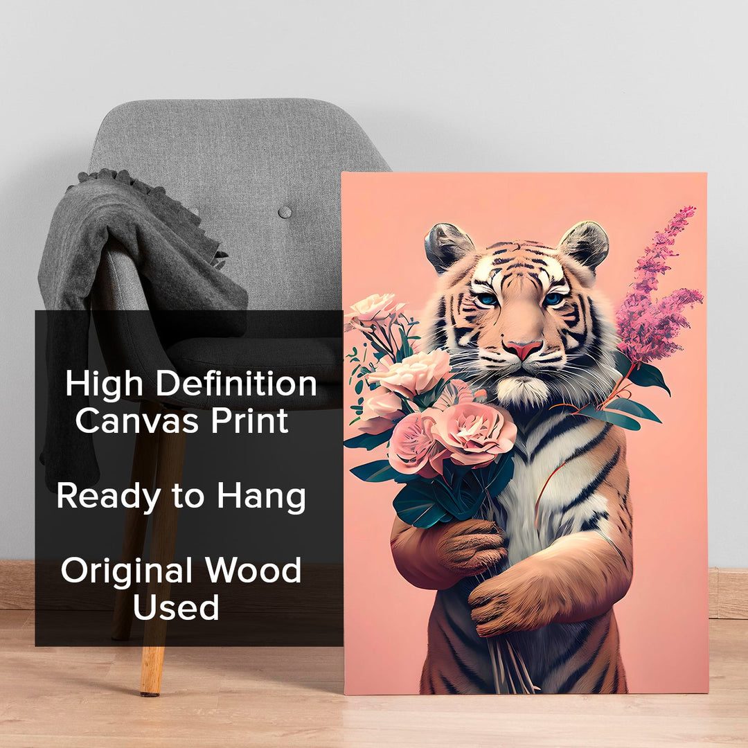 - Pop Art: This painting falls under the Surrealism and Pop Art categories, with elements of Whimsical Fantasy. It blends the fierce nature of a tiger with the softness of flowers, creating a visually striking contrast.