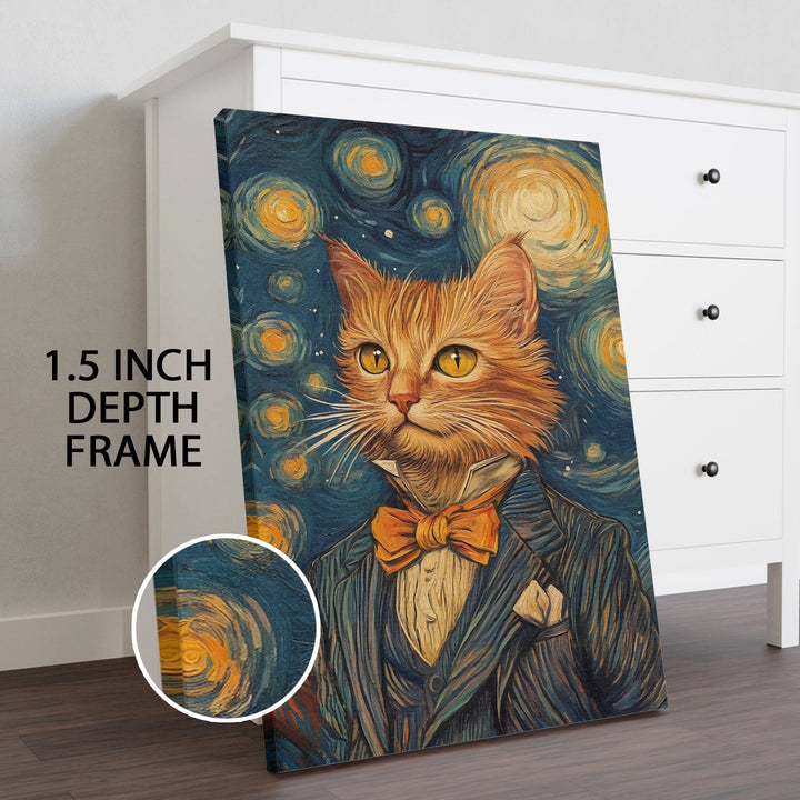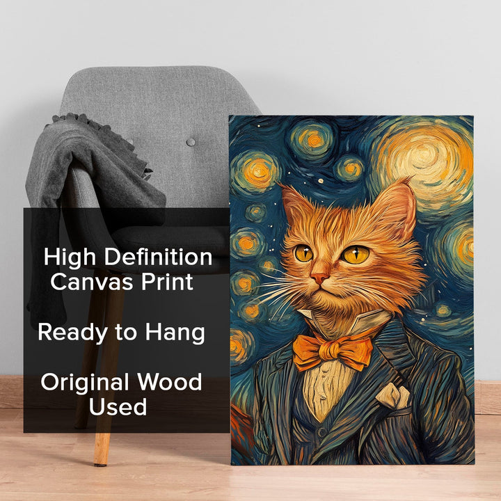 - Maximalist Art: Rich, bold colors and intricate detailing create a visually striking piece. The cat is portrayed in a formal suit, combining fantasy and human-like elements.