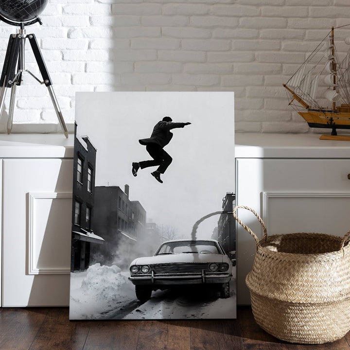 - Cinematic Art: Evokes the feel of an action movie scene, reminiscent of classic chase sequences. Represents themes of risk-taking, escape, or breaking boundaries.
