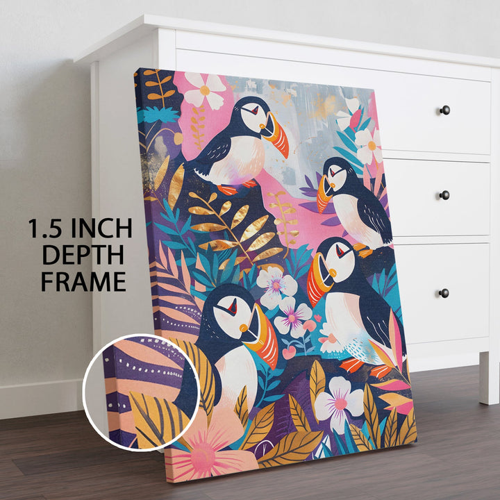 Tropical Puffin Paradise Wall Art Painting, HD Canvas Print, Framed, Ready to Hang. (MAXWA112)