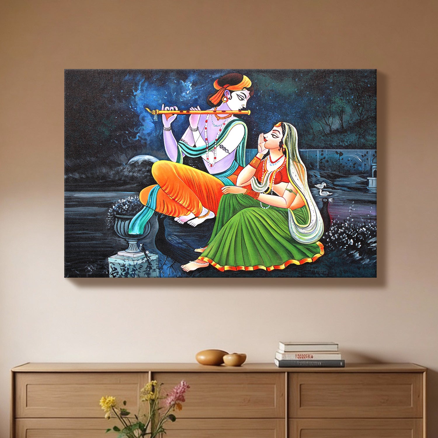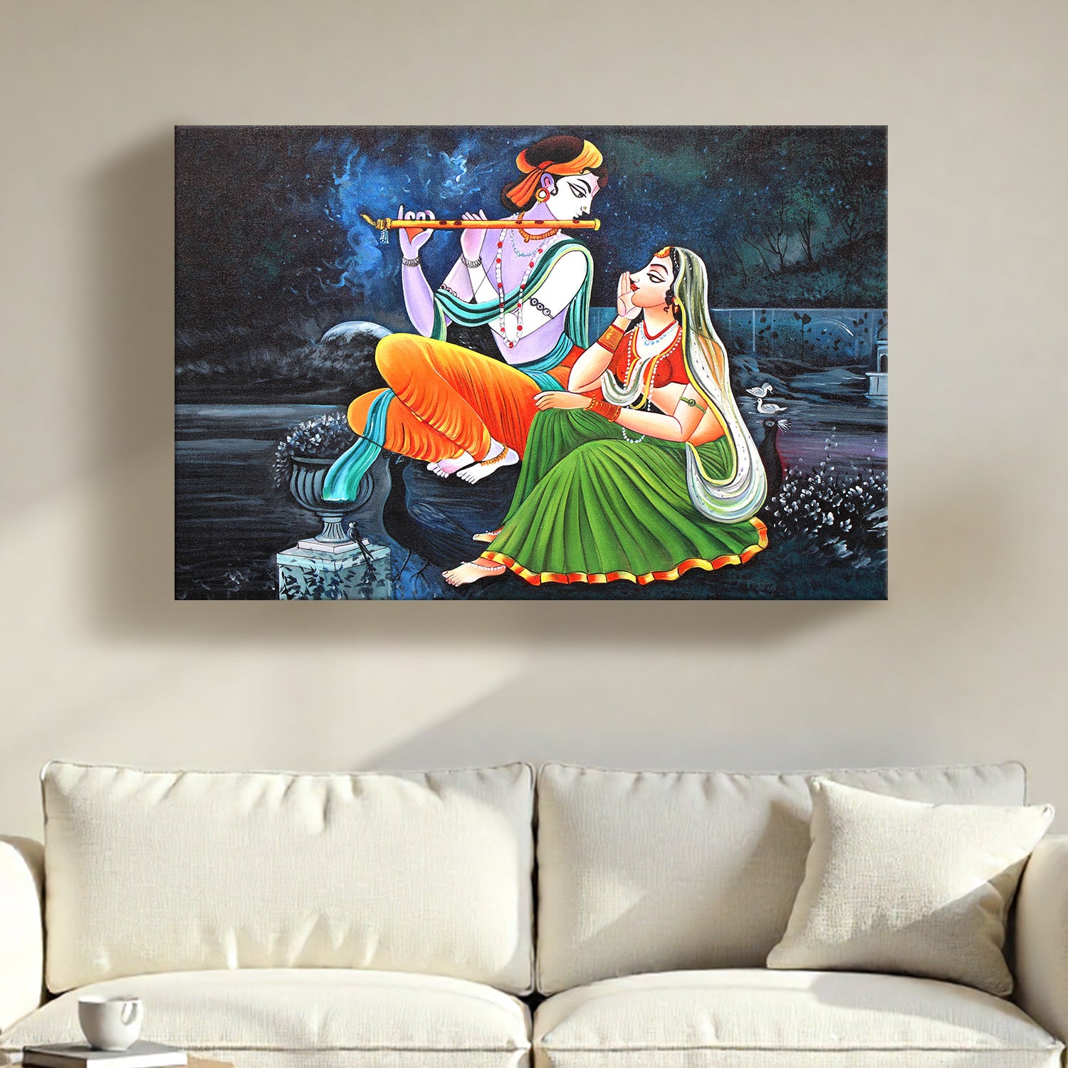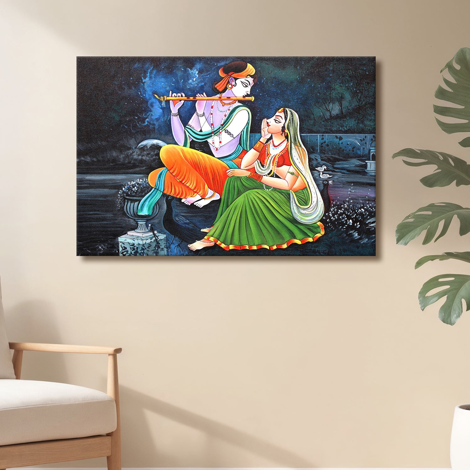 Radha Krishna Divine Harmony Wall Art | HD Canvas Print Gallery Wrap Painting | Ready to Hang | Perfect for Pooja Room & Office Décor (RKWA22)