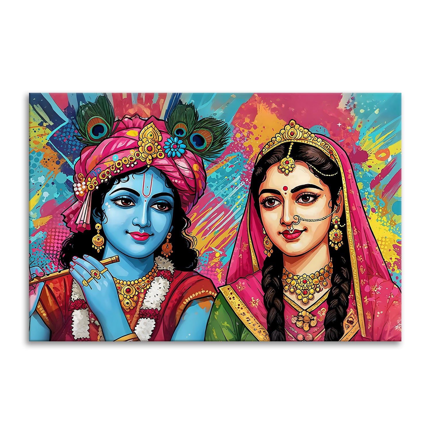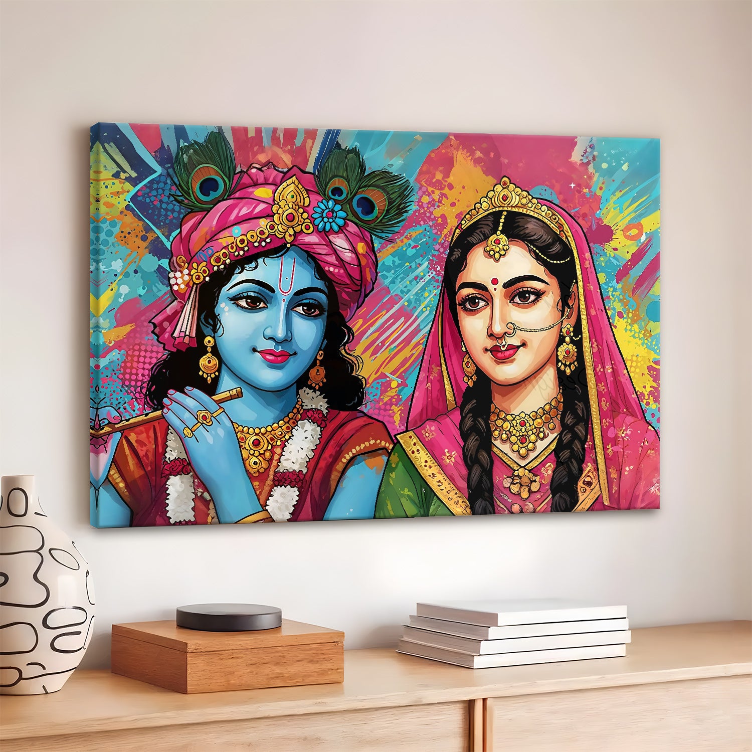 Radha Krishna Divine Harmony Wall Art | HD Canvas Print Gallery Wrap Painting | Ready to Hang | Perfect for Pooja Room & Office Décor (RKWA23)