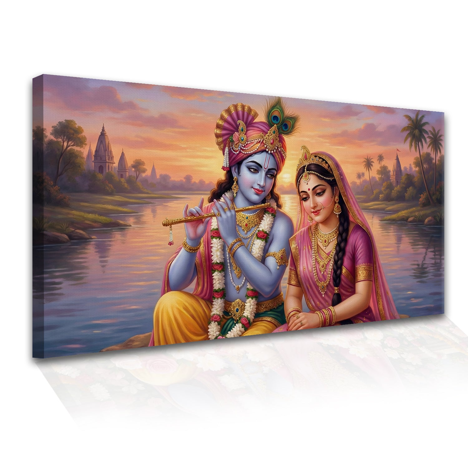 Radha Krishna Divine Harmony Wall Art | HD Canvas Print Gallery Wrap Painting | Ready to Hang | Perfect for Pooja Room & Office Décor | Size: 24x48 Inch (RKWA27)