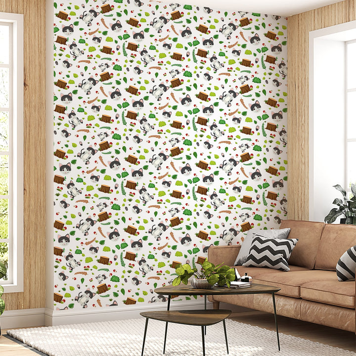 Bring a touch of nature and elegance to your walls with our Leafs with Cats Wallpaper. This unique design features beautiful illustrations of leafs and cats in a harmonious combination of colors, creating a serene and inviting atmosphere in any room. Perfect for a living room, bedroom, or any nature lover's space, this wallpaper will add a touch of beauty and tranquility to your home. The subtle design and soothing colors will create a peaceful environment that you'll love to come home to.